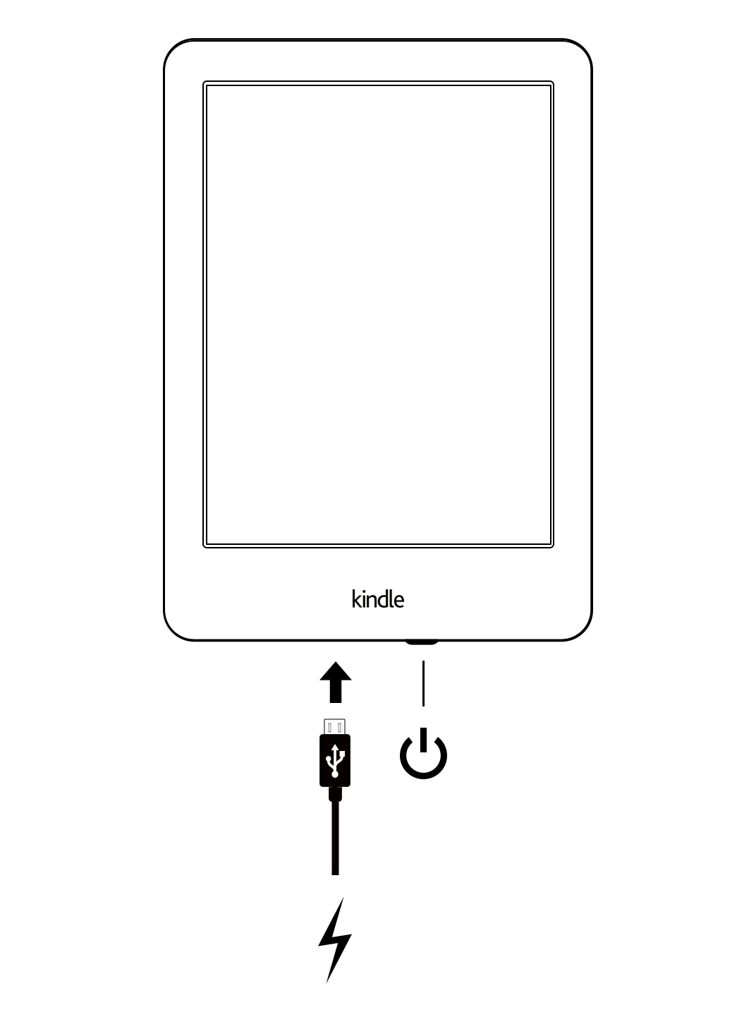 Micro-USB-poort/stroompoort: Gebruik de meegeleverde USB-kabel om je Kindle aan te sluiten op een computer en de batterij op te laden. Je kunt ook de USB-kabel gebruiken om bestanden over te dragen naar je Kindle. Als je je Kindle wilt opladen via een stopcontact, heb je een compatibele netadapter nodig (apart leverbaar) voor de USB-kabel.