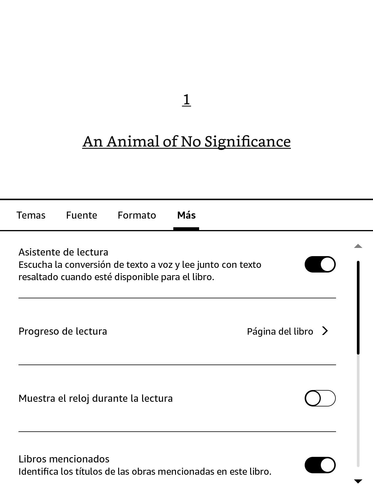 Ten en cuenta que no todos los libros Kindle incluyen números de página. Para ocultar el Progreso de lectura, selecciona la opción Ninguno.