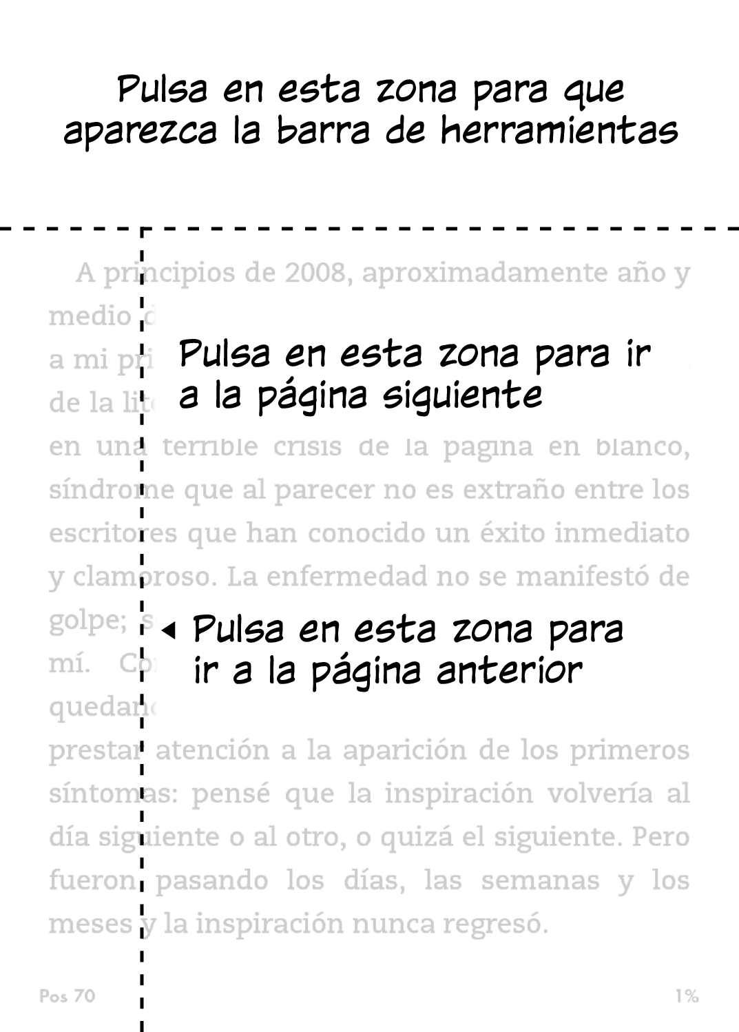 Al pulsar en la parte superior de la pantalla, también aparece en la barra Navegación de lectura el nombre del capítulo (de estar disponible).
