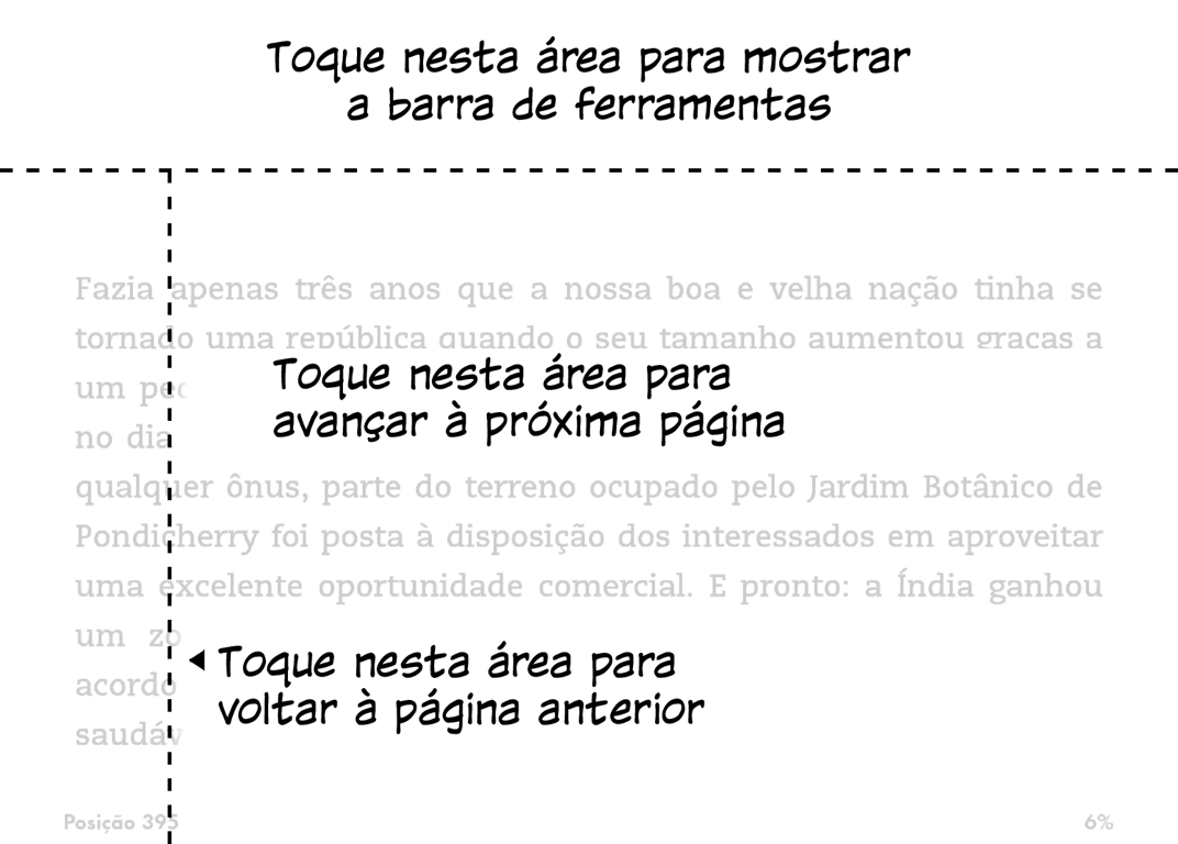 Durante a leitura, toque na parte superior da tela para mostrar as barras de ferramentas de navegação de leitura e do eBook.