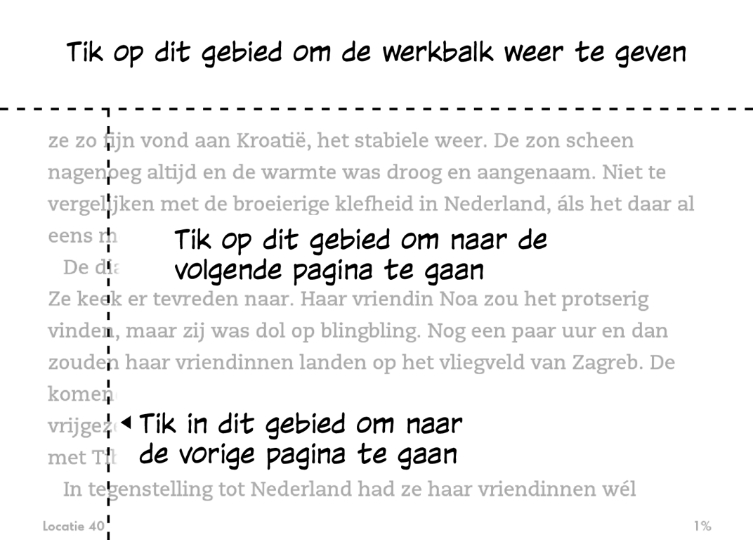 Wanneer je op de bovenkant van het scherm tikt, wordt de naam van het hoofdstuk (indien beschikbaar) ook weergegeven in de leesnavigatiewerkbalk.