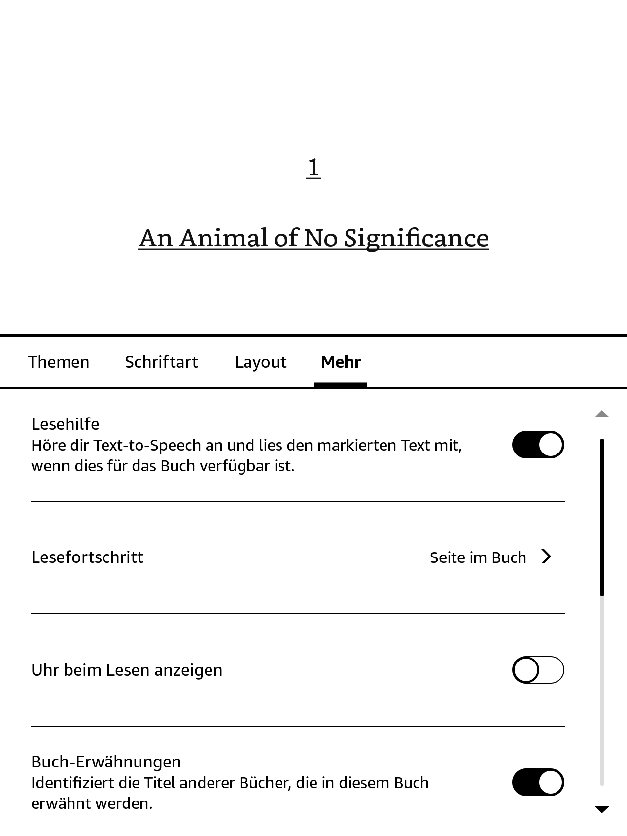 Nicht alle Kindle eBooks enthalten Seitenzahlen. Wähle „Lesefortschritt nicht anzeigen“, um den Lesefortschritt auszublenden.