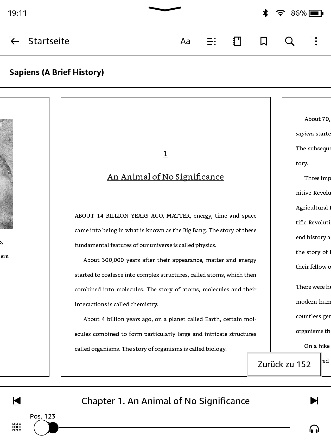 Nicht alle Kindle eBooks enthalten Seitenzahlen. Wähle „Lesefortschritt nicht anzeigen“, um den Lesefortschritt auszublenden.