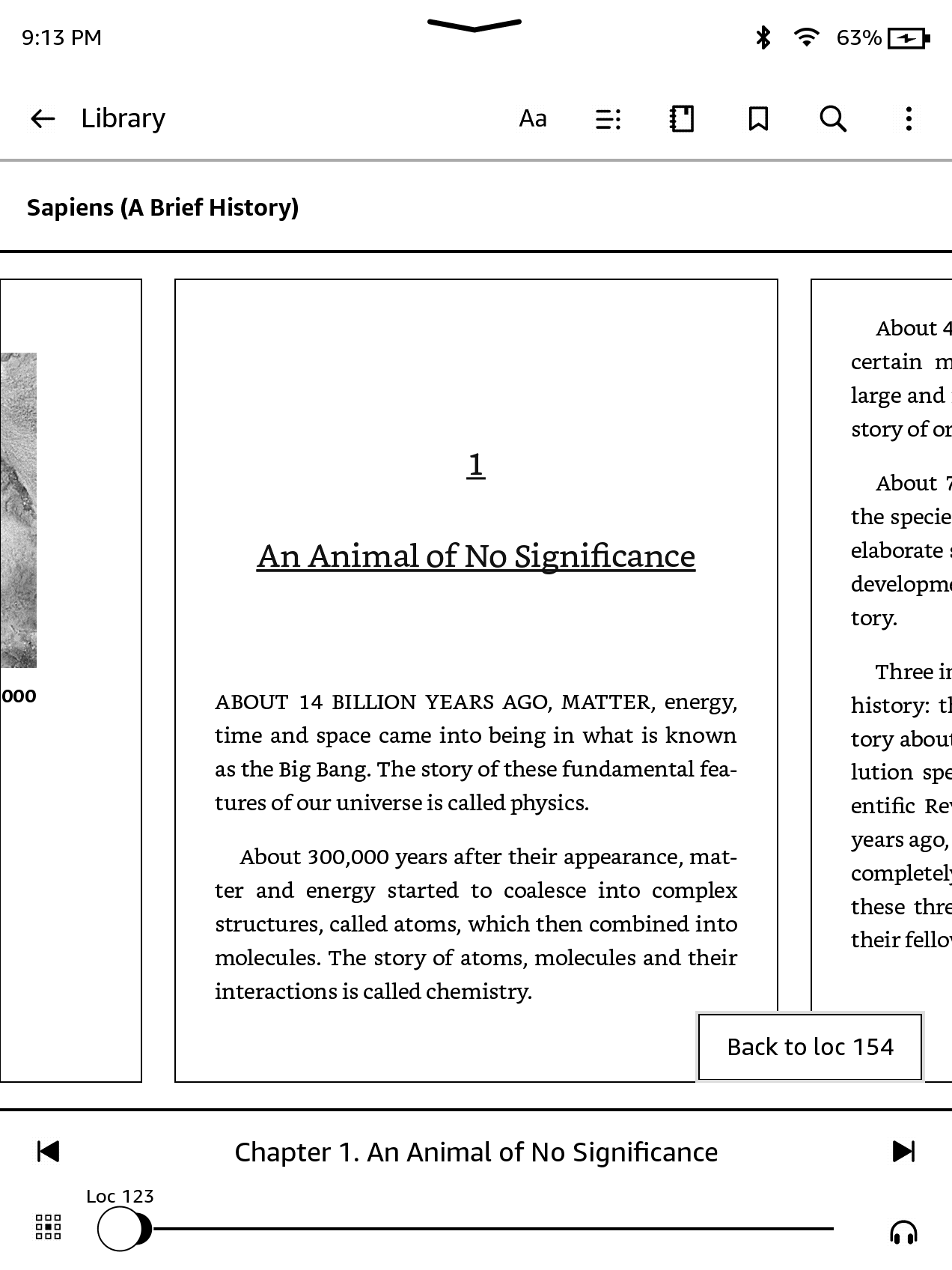 When you tap the top of the screen, the chapter name (if available) also displays on the Reading Navigation toolbar.