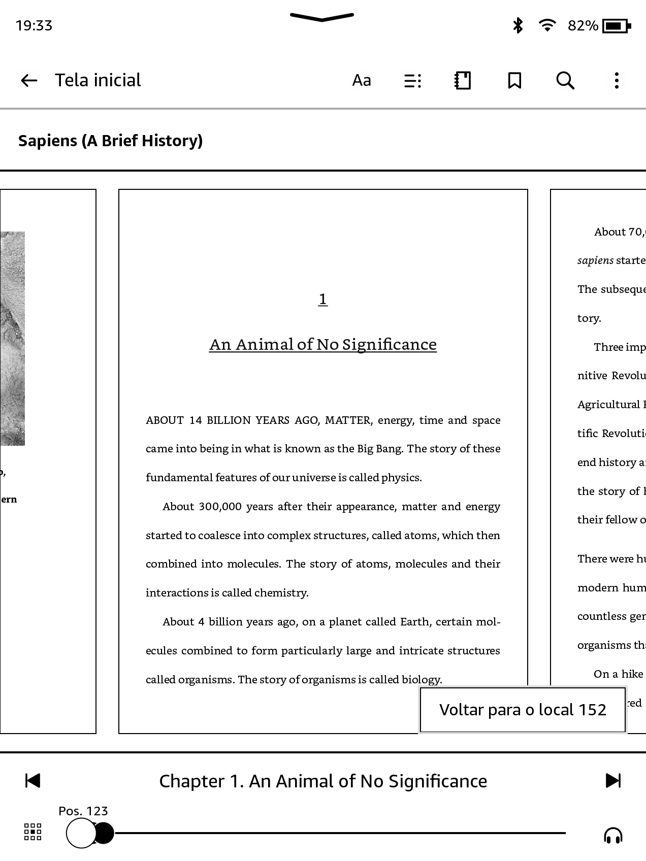 Ao tocar na parte superior da tela, o nome do capítulo (se disponível) também será exibido na barra de ferramentas de navegação de leitura.
