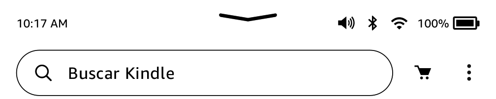 En la parte superior de la pantalla de inicio, podrás ver indicadores que te informarán acerca del estado del Kindle Paperwhite. Para ver dichos indicadores mientras lees un libro o un documento, pulsa en la parte superior de la pantalla para que aparezcan las barras de herramientas.