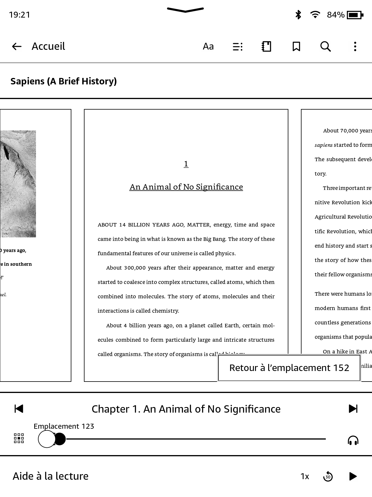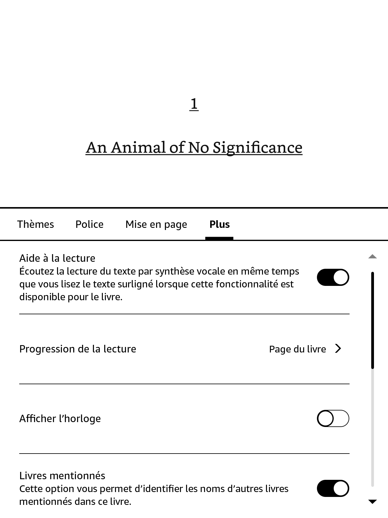 L'aide à la lecture s'arrête automatiquement lorsque vous ne lisez plus, par exemple lorsque vous ouvrez le menu de navigation ou que vous créez une annotation (surlignements ou notes).