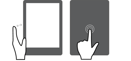 O seu Kindle Paperwhite tem uma interface de tela sensível ao toque, que permite que você realize muitas tarefas com apenas um toque ou ao deslizar um dedo. Para selecionar um item, basta tocá-lo. Por exemplo: toque na capa de um eBook ou no título dele para abri-lo, ou toque no ícone de menu na capa do item para visualizar as opções que estão disponíveis. A Tela inicial e a Biblioteca podem ser acessadas pela barra de navegação inferior.