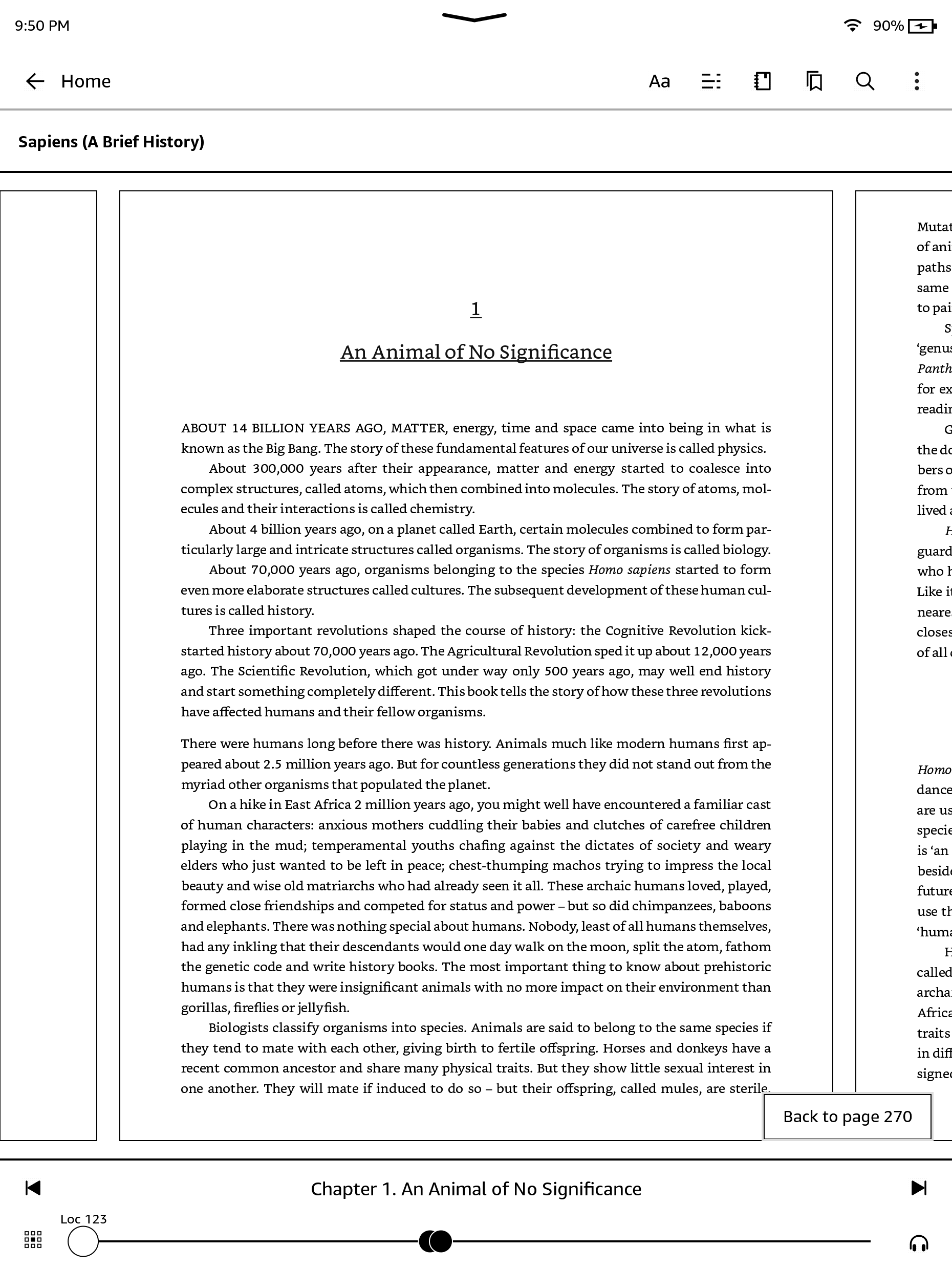 When you tap the top of the screen, the chapter name (if available) also displays on the Reading Navigation toolbar.