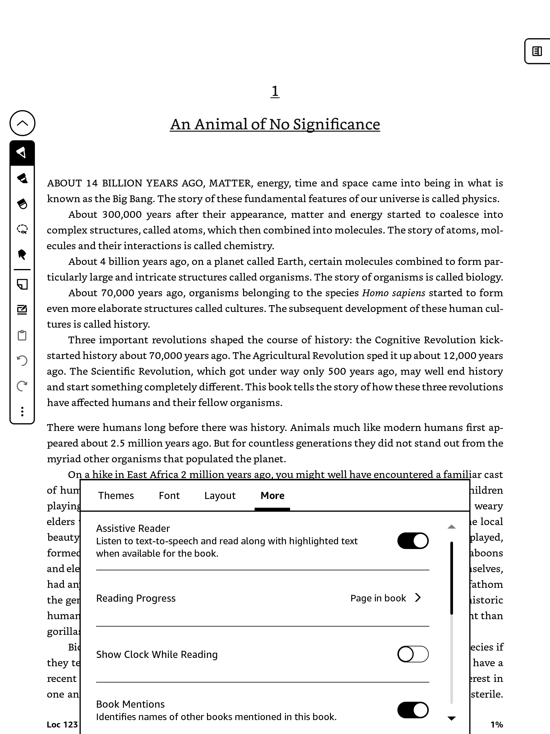 With the Assistive Reader, you can listen to your books with Text-to-Speech and read along with synchronized real-time underlining.